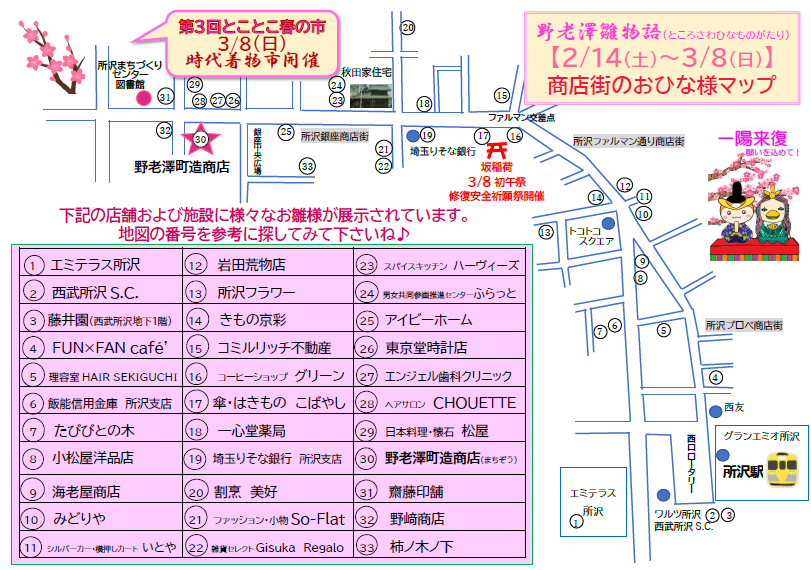 ひな飾りを目印に、まちを歩いて、出会って、楽しむ春の所沢。